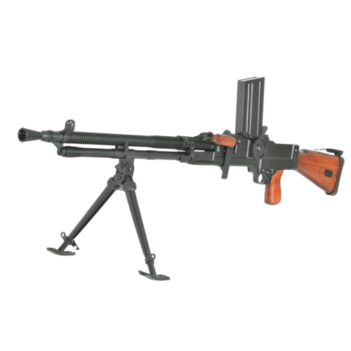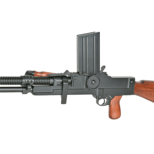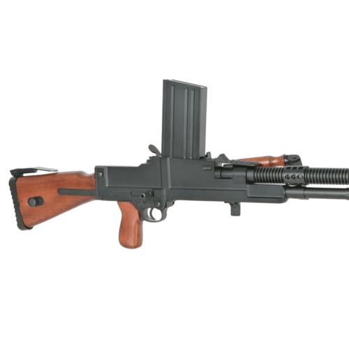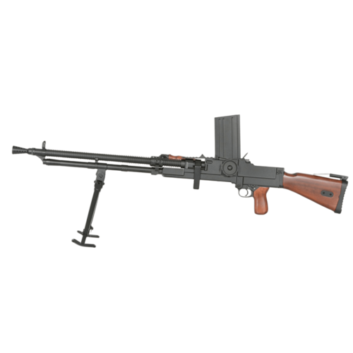 ZB 26 / MG 26 AEG (SW-028W) je kakovostna električna airsoft replika legendarnega češkoslovaškega lahkega mitraljeza, izdelana iz kovine in lesa, kar zagotavlja realistično težo, trdnost in avtentičen videz.