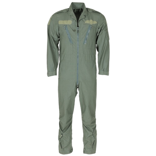 Vojaški kombinezon za letalstvo britanske vojske v zeleni barvi, zasnovan za uporabo v zahtevnih pogojih.