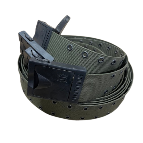 Opasač je izdelan iz trpežnega platna v zeleni barvi, ki zagotavlja visoko odpornost proti obrabi in dolgo življenjsko dobo. Material je robusten in primeren za dolgotrajno uporabo.