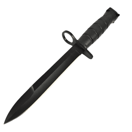 Reprodukcija bajoneta M10/M16. Bajonet s fiksnim dvostranskim ravnim rezilom in trdnim plastičnim ročajem.
