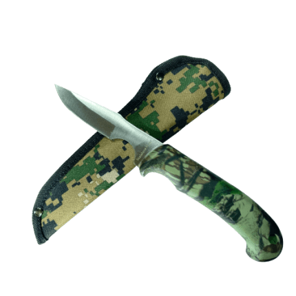 Univerzalni lovski in ribiški nož je prava poslastica za ljubitelje narave. Nož bo odličen pripomoček za kampiranje, gobarjenje , lovske ali ribolovne trenutke ob jezeru ali reki. Uporaben bo tudi za vrt, delavnico ali preprosto kot pripomoček pri vsakdanjem delu. Ribiški nož ima rezilo s klasičnim ravnim zadnjim profilom iz visokokakovostnega nerjavečega jekla 420 . Udoben in ergonomsko profiliran ročaj je izdelan iz plastike v barvi gozdne kamuflaže. Nož se popolnoma prilega roki , delo z njim pa je izjemno udobno.