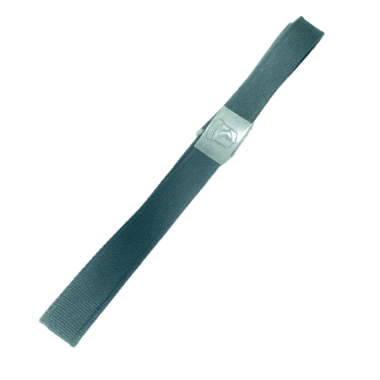 Pas se konča s kovinsko sponko, ki preprečuje razslojevanje in olajša previjanje skozi zanko pasu.