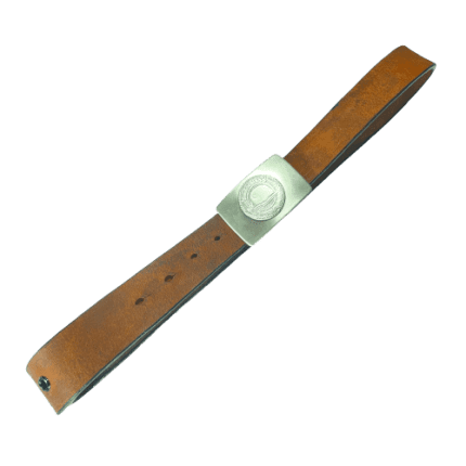 Izdelan iz usnja z kovinsko zaponko na kateri je nemška čelada.