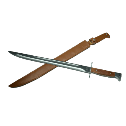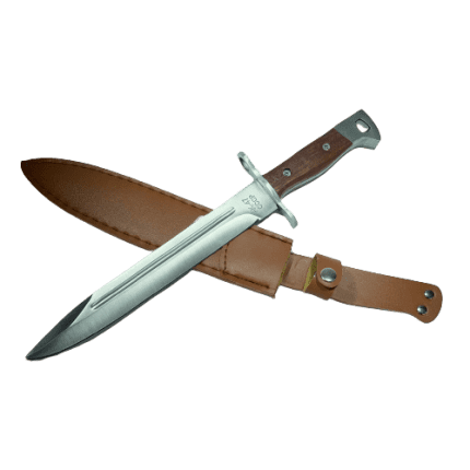 Replika klasičnega sovjetskega bajoneta za AK-47 “Kalašnikov. Masivno rezilo z modelnim profilom clip point je izdelano iz nerjavečega jekla 420. Udoben ročaj iz jekla in lesene obloge se popolnoma prilegajo roki. Široki jekleni križni ščitnik ima poleg klasične funkcije zaščite roke pred zdrsom proti rezilu še obroček za namestitev na puškino cev.
